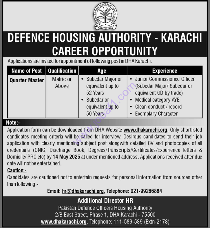 Are you looking for jobs near you in Karachi? This job might be perfect for you! The Defence Housing Authority (DHA) in Karachi, Sindh, Pakistan has new jobs. If you want to work in government jobs 2025, now is a good time to apply.