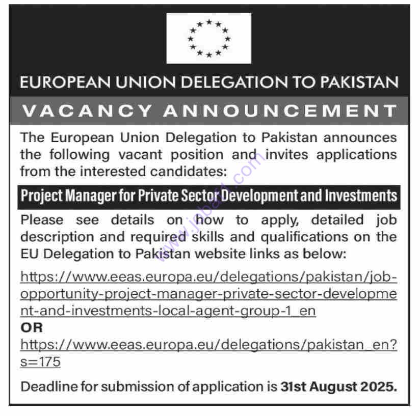 Login to Send MessageThe European Union Delegation to Pakistan is hiring for a full-time management position in Islamabad, Pakistan. This is a government sector opportunity for qualified candidates looking to build a career in international relations, project management, or administrative leadership.