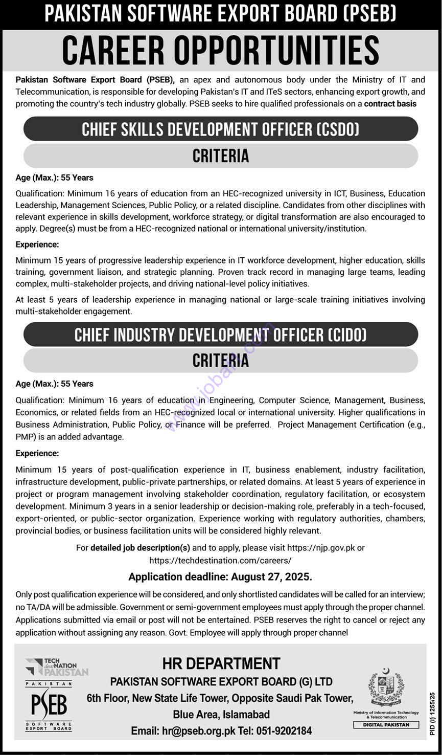 The Pakistan Software Export Board (PSEB) in Islamabad, Pakistan is offering full-time management job opportunities for qualified candidates. This is a great chance to work in a respected government organization that plays a key role in developing the IT sector in Pakistan.