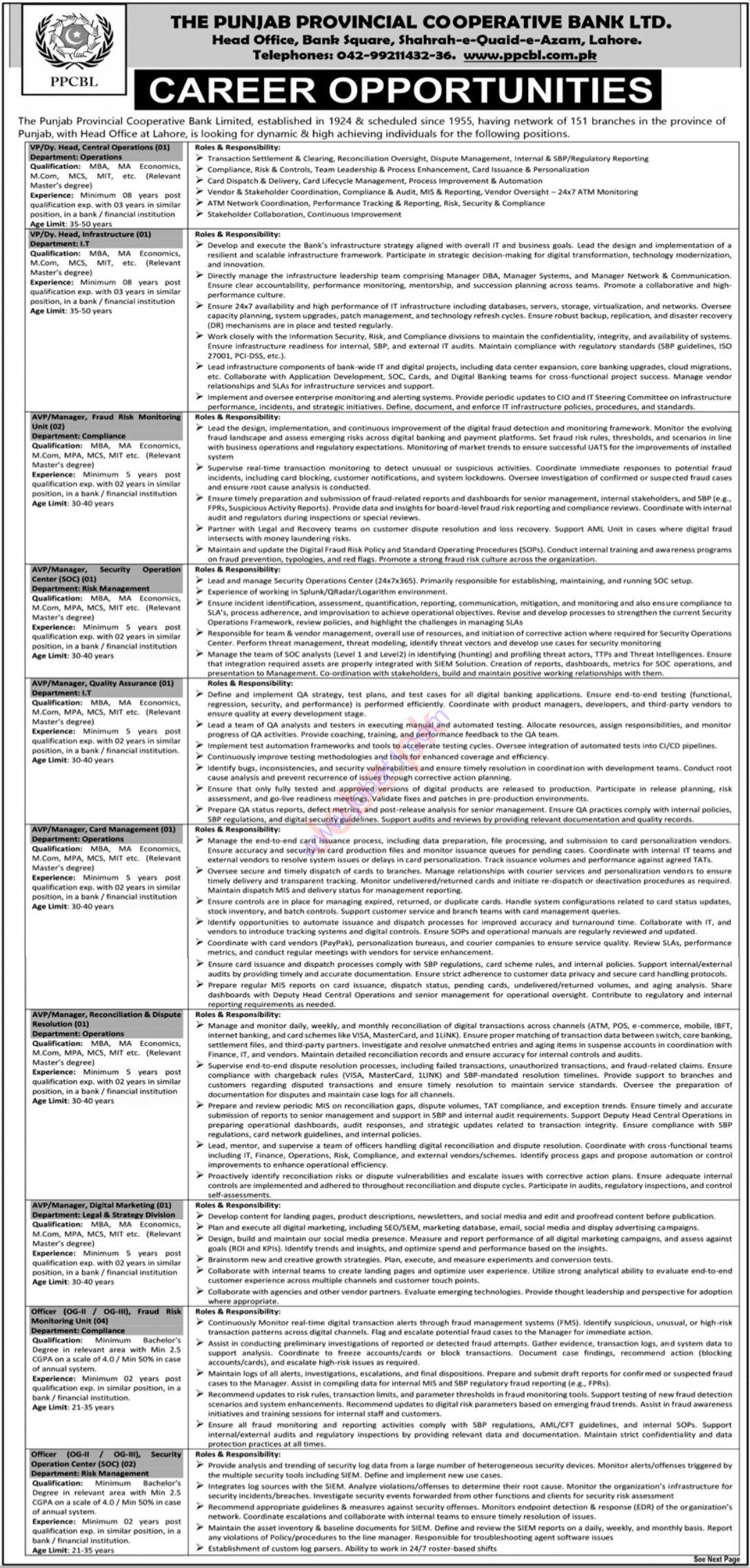 This opportunity is ideal for candidates seeking government bank jobs in Lahore with relevant experience and strong educational backgrounds. If you meet the requirements and want to work with The Punjab Provincial Cooperative Bank Ltd, apply now to advance your career in the banking industry.